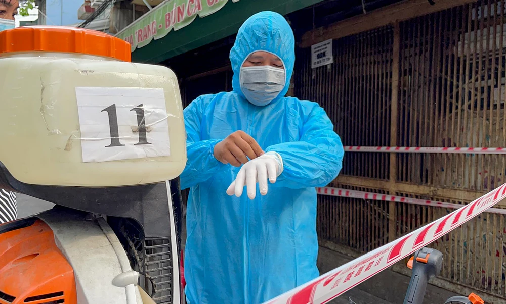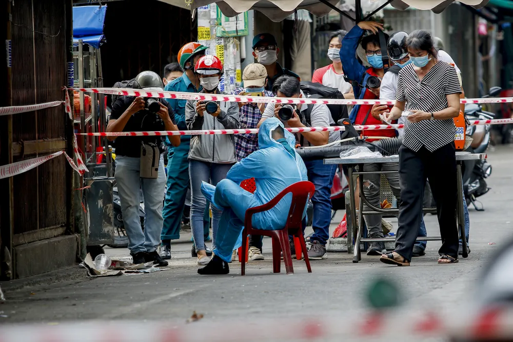 Lực lượng dân phòng, công an, y tế phường đã dựng rào chắn, lấy lời khai y tế các hộ dân sinh sống trong khu vực phong tỏa, duy trì trật tự, hướng dẫn người dân đi lối khác.