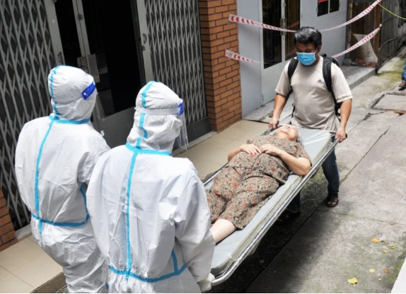 Trạm y tế lưu động kết nối, vận chuyển ca bệnh COVID-19 tới bệnh viện. Ảnh: HCDC