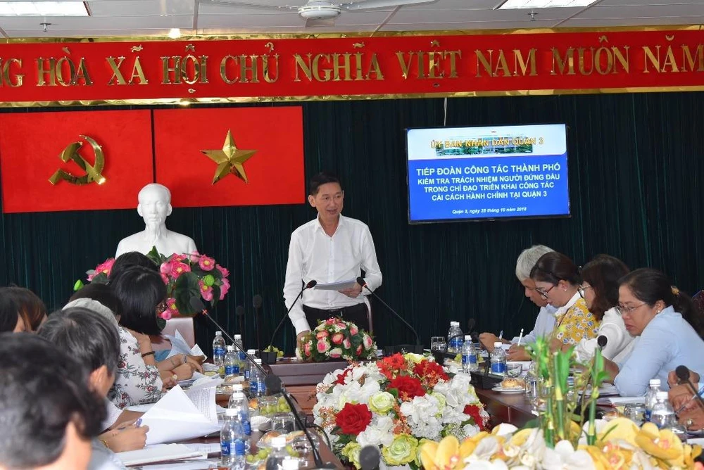 Sáng 25-10, Phó Chủ tịch UBND TP.HCM Trần Vĩnh Tuyến dẫn đầu đoàn công tác đã có buổi kiểm tra trách nhiệm người đứng đầu trong chỉ đạo triển khai công tác cải cách hành chính tại quận 3.