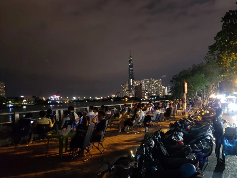 Riêng tại bờ kênh Thanh Đa, phường 27, dọc theo bờ sông có khoảng 50 bàn, khách đến đây chủ yếu là nam nữ trẻ tuổi. Ảnh: CM