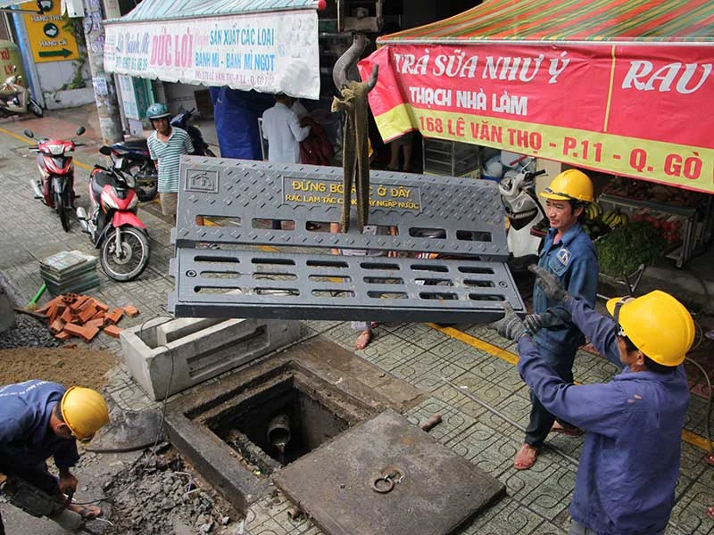 338 hố ga kiểu mới được thiết kế ngăn mùi hôi bốc ngược từ dưới cống bắt đầu được Công ty TNHH MTV Thoát nước đô thị TP.HCM lắp đặt tại ba tuyến đường Lê Văn Thọ, quận Gò Vấp; Trương Định, quận 3; Vĩnh Khánh, quận 4 và hai tuyến hẻm 254, 385 Lê Văn Thọ.