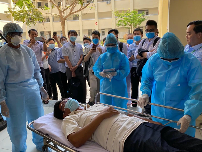 Diễn tập tiếp nhận điều trị bệnh nhân nhiễm COVID-19 tại Trung tâm Y tế huyện Cần Giờ. (Ảnh do Sở Y tế TP.HCM cung cấp)