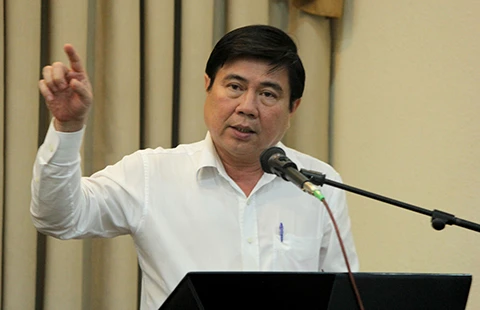 Chủ tịch UBND TP.HCM Nguyễn Thành Phong tiếp xúc với cử tri quận 1. Ảnh: HOÀNG GIANG