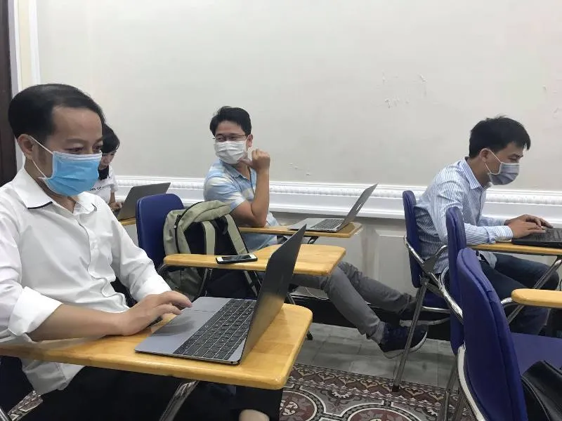 Nhiều phóng viên dự hội nghị đeo khẩu trang đề phòng virus Corona. Ảnh: TÁ LÂM