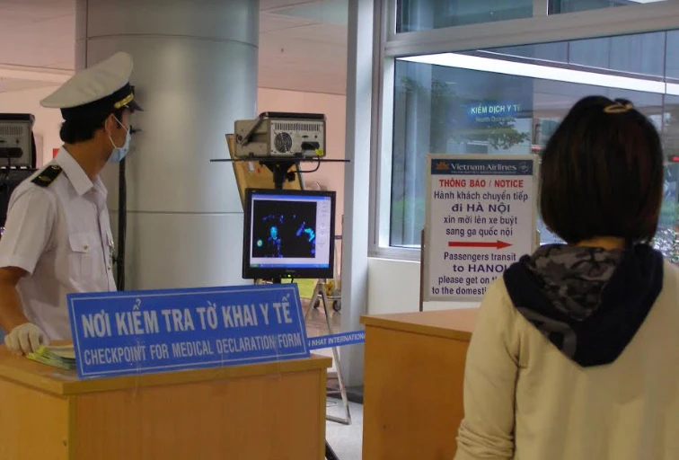 Hành khách thực hiện khai y tế tại cửa khẩu sân bay Tân Sơn Nhất. Ảnh: TRẦN NGỌC