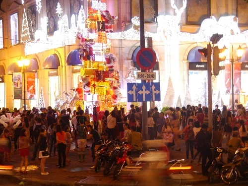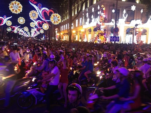 Hàng ngàn người đổ về trung tâm thành phố khiến các con đường Lê Duẩn, Lê Lợi, Đồng Khởi, Nam Kỳ Khởi Nghĩa, Tôn Đức Thắng,… kẹt xe nghiêm trọng. Tuy nhiên, mọi người vẫn vui vẻ. Trương Quốc Bảo- sinh viên trường ĐH Mở TP.HCM cho biết: “ Dù đường rất đông phương tiện đi lại và kẹt xe nhưng mình vẫn thích bởi như vậy mới có không khí của ngày lễ Giáng sinh.”