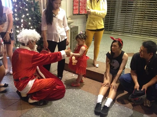 Không khí tối Giáng sinh trở nên tươi vui hơn khi có sự xuất hiện của “ông già Noel” phát quà cho mọi người