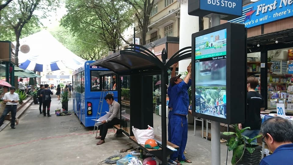 Bên cạnh xe buýt sách, khách tham quan đường sách TP.HCM còn được chiêm ngưỡng và đọc sách ngay tại trạm chờ “tri thức”, được trang bị kệ sách, băng ghế gỗ, mái che thiết kế theo hình trang sách. Song song đó, bạn đọc và khách du lịch được trải nghiệm WiFi miễn phí, tra cứu thông tin về sách, về hoạt động đang diễn ra tại đường sách TP.HCM, thông tin về các chuyến xe buýt tại TP.HCM để thuận tiện cho việc di chuyển. Bảng tra cứu thông tin điện tử này là mô hình đầu tiên ở TP.HCM, nằm trong kế hoạch chuẩn bị triển khai việc ứng dụng công nghệ tại các trạm chờ của Sở GTVT TP.HCM.