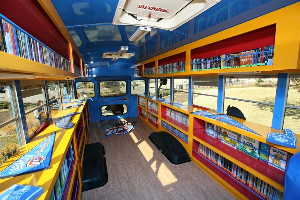 Không gian bên trong xe buýt sách theo bản thiết kế. (Ảnh do BQL đường sách TP.HCM cung cấp)