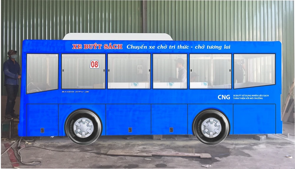 Công tác chuẩn bị cho lễ khánh thành xe buýt sách vào ngày 21-4 đang được gấp rút thực hiện. (Ảnh do BQL đường sách TP.HCM cung cấp)