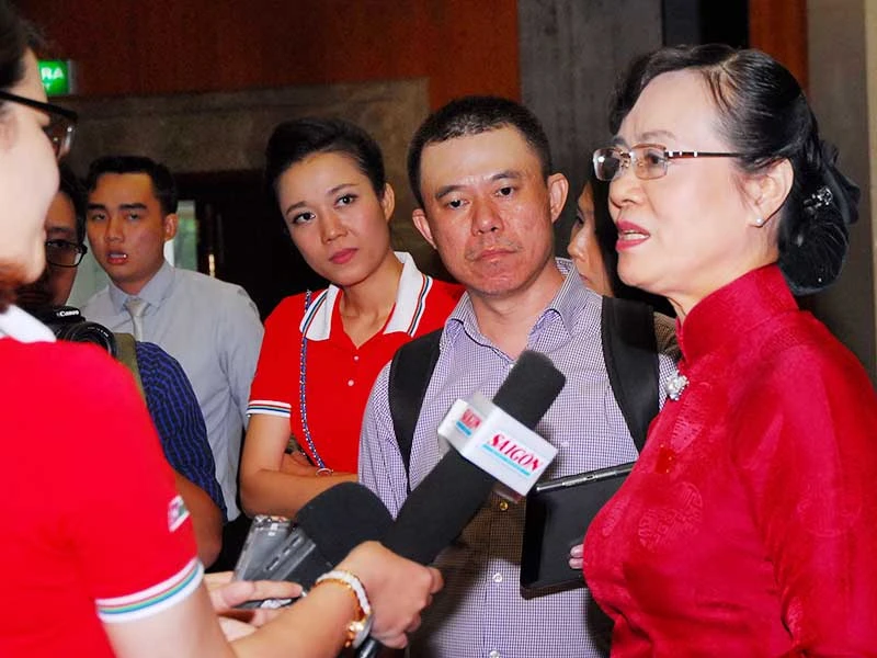 Các nhà báo phỏng vấn Chủ tịch HĐND TP.HCM Nguyễn Thị Quyết Tâm trong phiên bế mạc. Ảnh: HTD