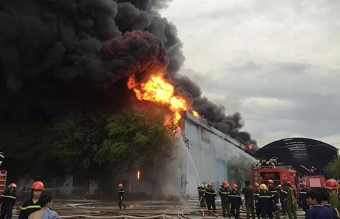 Vụ cháy gây thiệt hại 80 tỉ đồng ở Công ty Nệm Vạn Thành là do điện. Ảnh: N.TÂN