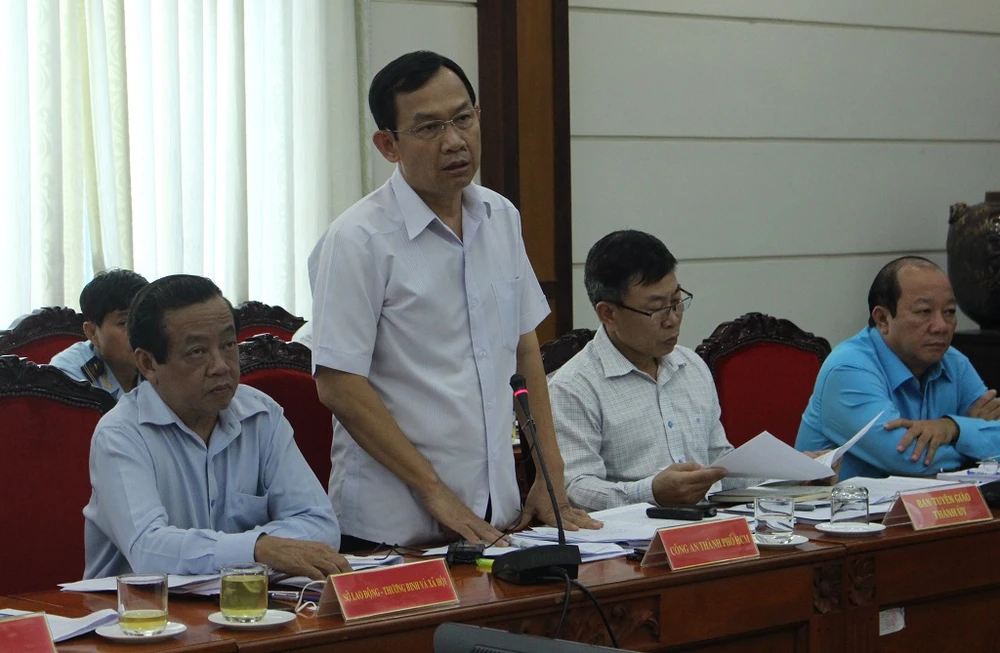 Đại tá Đinh Thanh Nhàn, Phó Giám đốc Công an TP.HCM, tại hội nghị. Ảnh: LÊ THOA