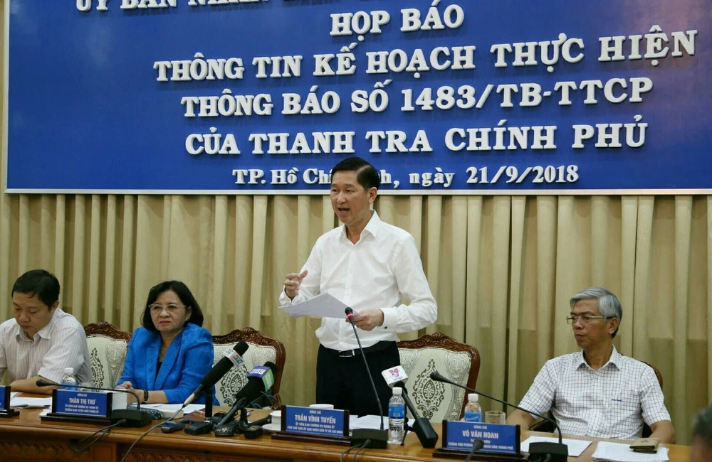 Phó Chủ tịch UBND TP.HCM Trần Vĩnh Tuyến đang trả lời các câu hỏi của báo chí. Ảnh: HOÀNG GIANG