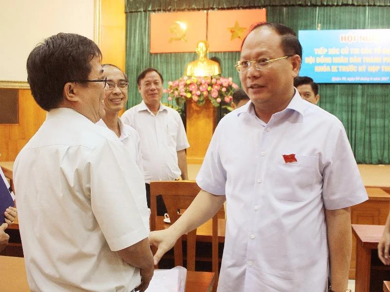 Sáng 9-6, Phó Bí thư Thường trực Thành ủy TP.HCM Tất Thành Cang cùng các đại biểu HĐND TP đã có buổi tiếp xúc với cử tri quận 10 trước kỳ họp thứ 5, HĐND TP.HCM khóa IX.