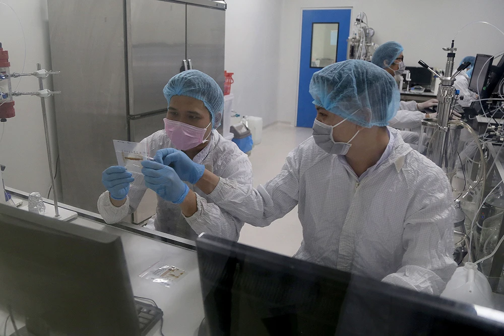 Nghiên cứu sản xuất vaccine tại một công ty dược ở Khu công nghệ cao TP.HCM. Ảnh: HOÀNG GIANG