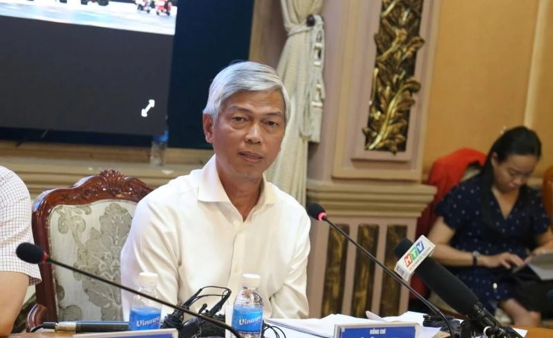 Ông Võ Văn Hoan, Chánh Văn phòng UBND TP.HCM, đang trả lời báo chí tại buổi họp báo chiều 1-10. Ảnh: TÁ LÂM