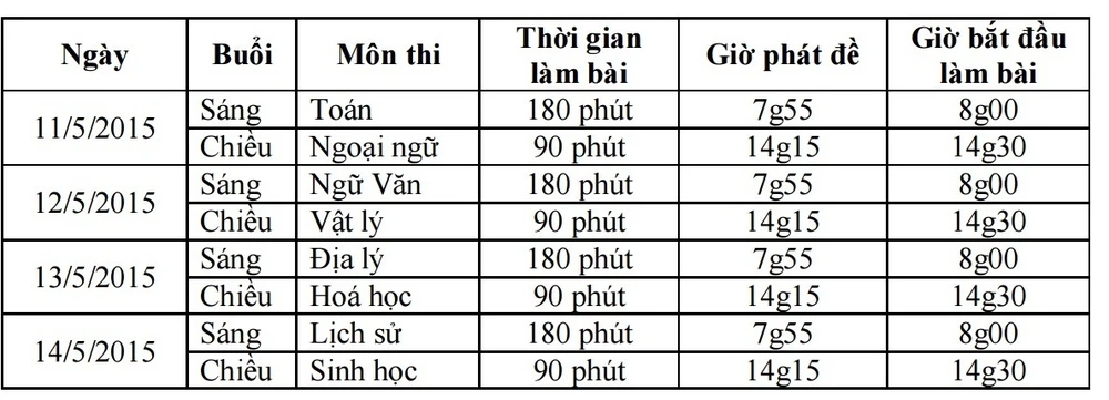 Kỳ thi nhằm giúp các trường và HS chuẩn bị làm quen với việc thực hiện kỳ thi THPT quốc gia chính thức vào tháng 7-2015. Sau khi tổ chức thi, làm bài thi và chấm thi, nhà trường và HS đúc rút kinh nghiệm về những thiếu sót để có kế hoạch bồi dưỡng, ôn tập trong thời gian trước kỳ thi chính thức.