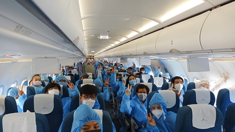 Chuyến bay chở người dân Đà Nẵng ở TP.HCM về quê an toàn. Ảnh: NGUYỆT NHI