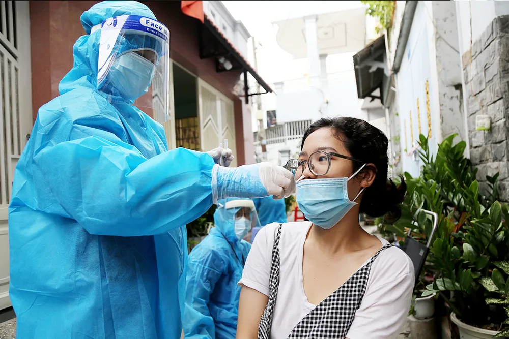 Lấy mẫu xét nghiệm tại nhà cho người dân TP.HCM. Ảnh: MINH TÂM