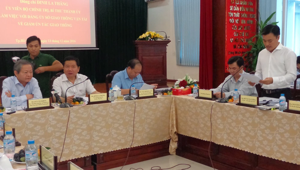 Tại cuộc làm việc với Bí thư Thành ủy TP.HCM Đinh La Thăng đang diễn ra sáng nay (13-12) tại Sở Giao thông vận tải (GTVT), Bí thư Đảng bộ, Giám đốc Sở GTVT Bùi Xuân Cường thông tin tình hình kẹt xe thường xuyên, ở nhiều tuyến đường liên hoàn, hướng đi vào trung tâm TP... đã làm cho tốc độ lưu thông ở TP chỉ còn trung bình 20,7 km/giờ. Từ đầu năm đến nay đã xảy ra 27 vụ kẹt xe lớn.