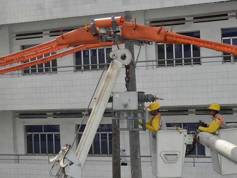 EVNHCMC thực hiện sửa chữa Live - Line (sửa chữa trên đường dây đang mang điện) để đảm bảo cung cấp điện liên tục cho người dân. Ảnh: EVNHCMC