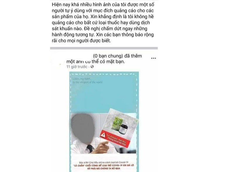 Theo bác sĩ LQH ( BV Chợ Rẫy, TP.HCM): có nhiều người dùng hình ảnh tôi nhưng không xin phép để quảng cáo TPCN, bản thân tôi cũng không biết rõ về sản phẩm đó.