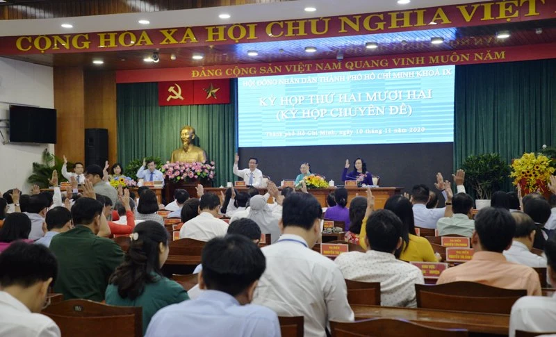 Các đại biểu HĐND TP.HCM thông qua việc tăng vốn ở 127 dự án và giảm vốn ở 26 dự án. Ảnh: TÁ LÂM