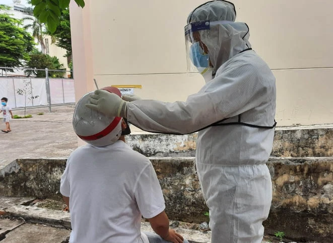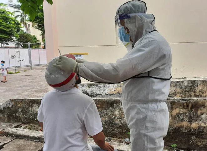 Thân nhân của lực lượng lấy mẫu được tiêm vaccine ngừa COVID-19. Ảnh: TRẦN NGỌC