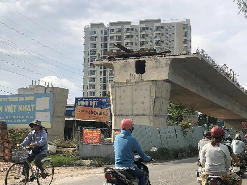 Cầu Nam Lý (quận 9, TP.HCM), là dự án hạ tầng giao thông sử dụng vốn đầu tư công đã ngưng thi công 2 năm vì vướng mặt bằng. Ảnh: ĐÀO TRANG