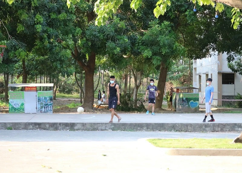 Người cách ly chơi thể thao trong khu cách ly ở Trung tâm Giáo dục quốc phòng, ĐH Quốc gia TP.HCM. Ảnh: THANH TUYỀN