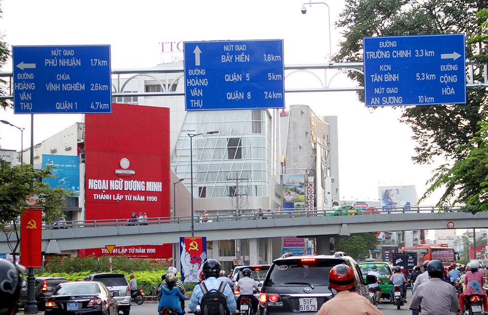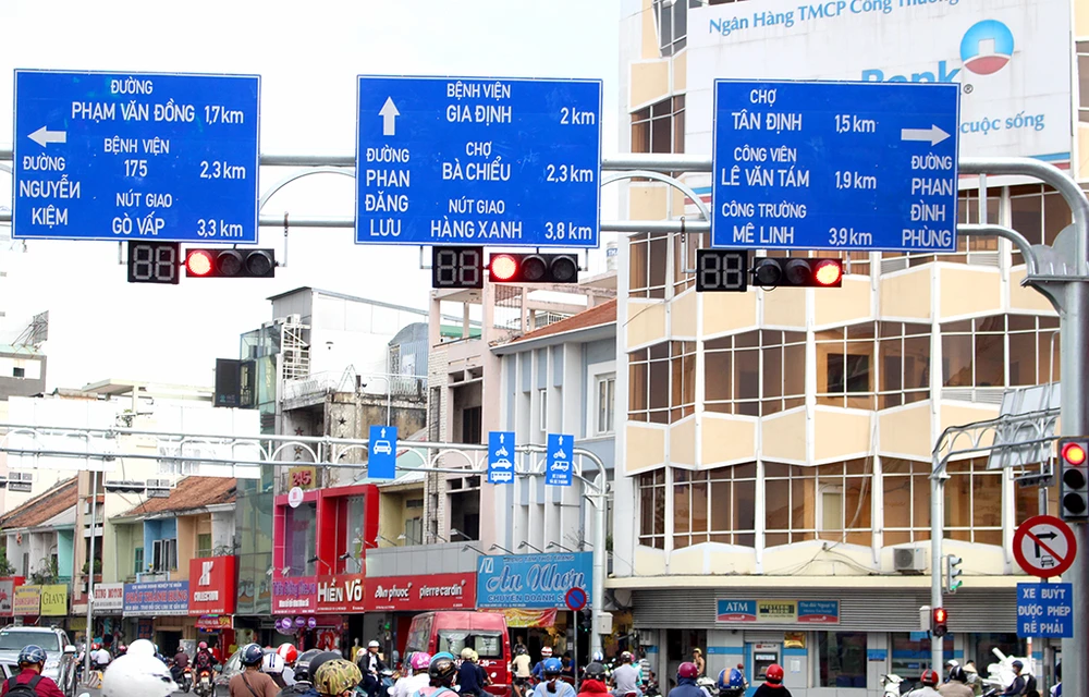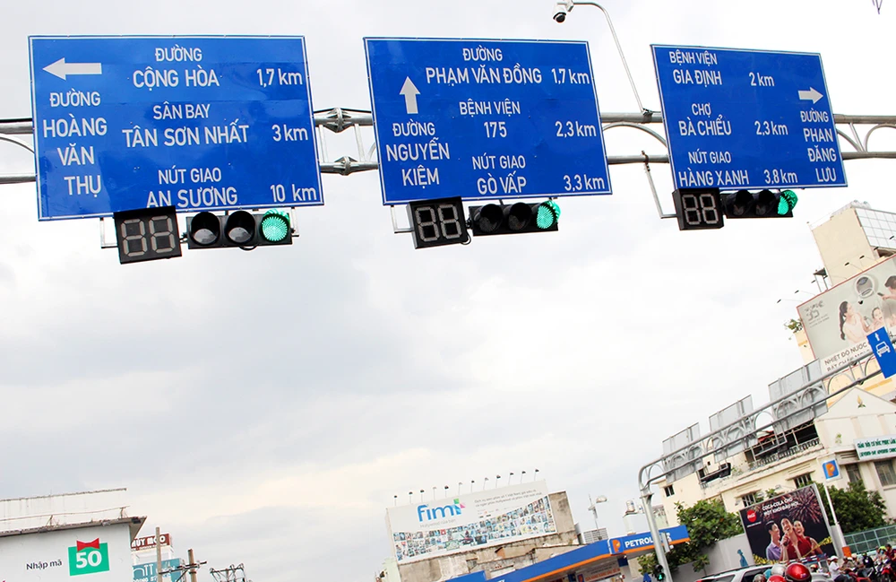 Theo ghi nhận của PV, tại TP.HCM, nhiều tuyến đường đã được gắn các biển báo giao thông mới với kích thước lớn hơn và cỡ chữ cũng to hơn. Đặc biệt quanh khu vực công viên Hoàng Văn Thụ, các tuyến đường đã được gắn biển mới từ lâu.