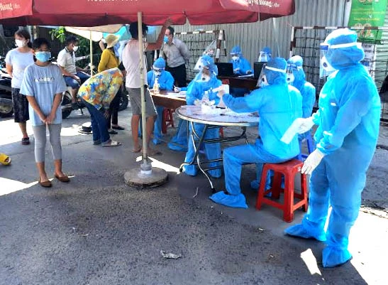 Lấy mẫu xét nghiệm cho người dân sống trong khu vực phong tỏa ở xã Trung Chánh, huyện Hóc Môn, TP.HCM. Ảnh: TRẦN NGỌC