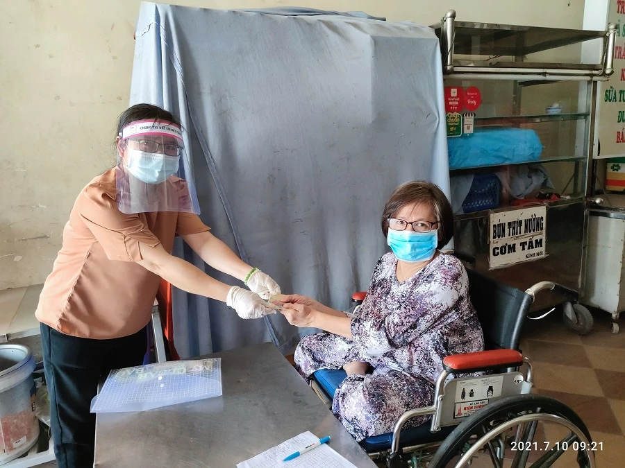 Cán bộ phường Thạnh Xuân, quận 12 trao hỗ trợ gói 886 tỉ đồng cho người lao động tự do bị ảnh hưởng bởi dịch COVID-19. Ảnh: NGUYỄN HIỀN