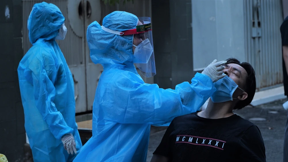 Lấy mẫu xét nghiệm COVID-19 khu vực có liên quan bệnh nhân. Ảnh: Yến Thư