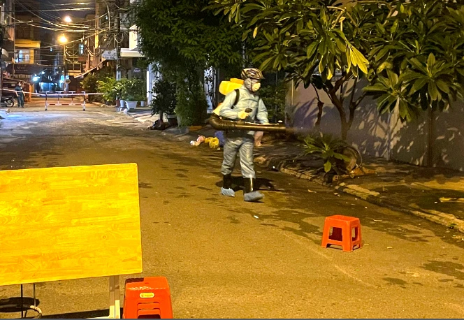 Khử khuẩn khu vực bị phong tỏa trên địa bàn quận 11, TP.HCM. Ảnh: TRẦN NGỌC