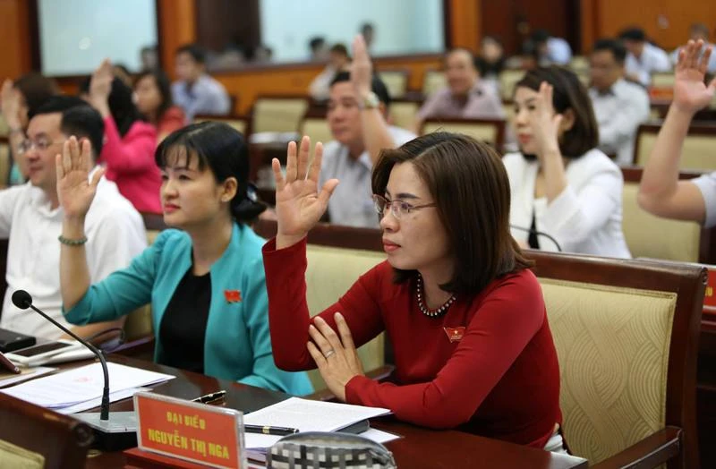 Các đại biểu thông qua tờ trình của UBND TP. Ảnh: HOÀNG GIANG