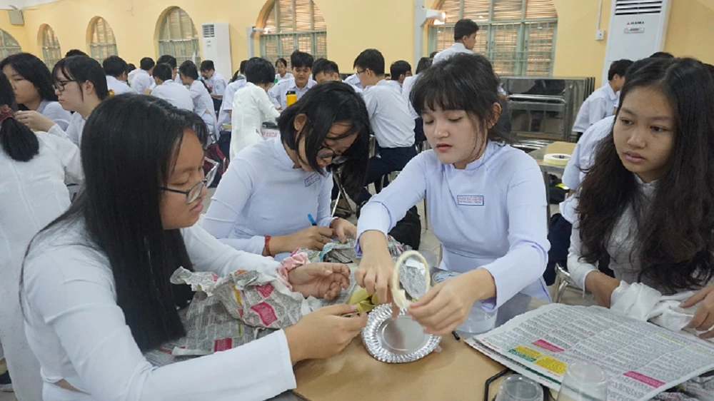 Học sinh Trường THPT chuyênTrần Đại Nghĩa, quận 1, TP.HCM trong tiết học Arkki. Ảnh: NGUYỄN QUYÊN