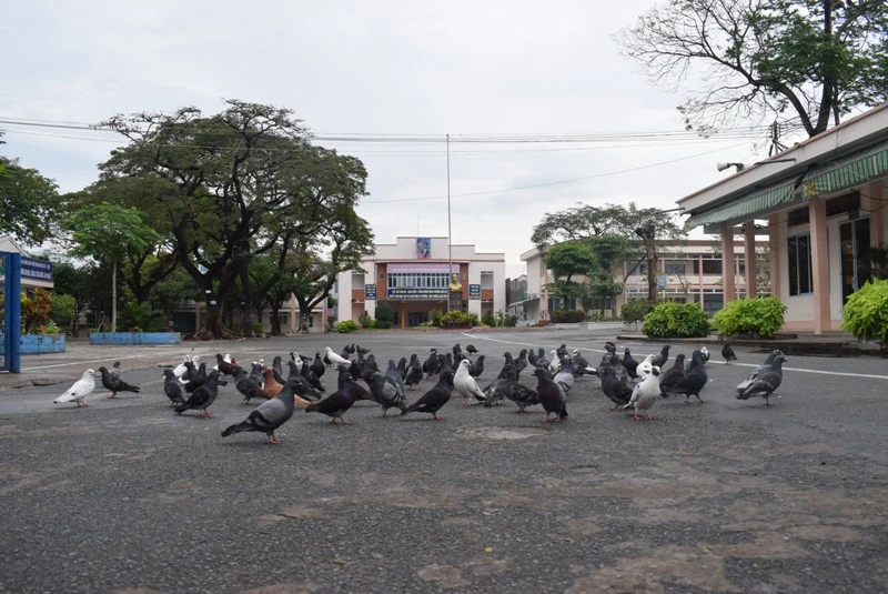 Tại Trường THCS Lê Quý Đôn (Thủ Đức), sân trường vắng lặng chỉ có đàn bồ câu gật gù tản bộ. Bác bảo vệ kể chuyện, trường có hơn 2.000 học sinh, đầu tuần đông lắm, hôm nay học trò được nghỉ bão nên vắng hoe. “Cũng may mà bão không vào, TP.HCM chỉ bị ảnh hưởng thôi” - bác cười.