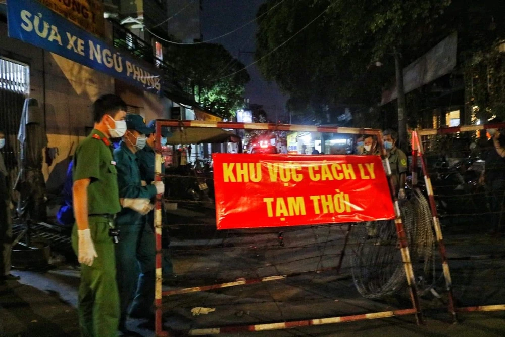 Khu vực nơi người nghi nhiễm COVID-19 ở quận Gò Vấp được tạm thời phong tỏa để điều tra truy vết. Ảnh: NGUYỆT NHI