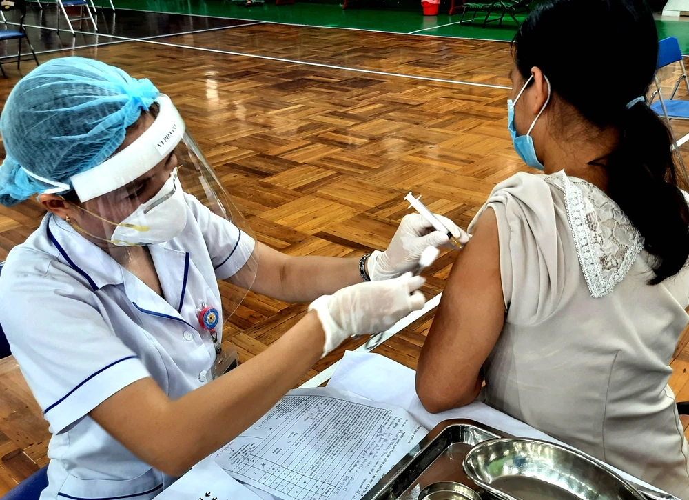 Nhân viên y tế tiêm vaccine ngừa COVID-19 cho thành viên tổ COVID cộng đồng quận 11, TP.HCM. Ảnh: TRẦN NGỌC