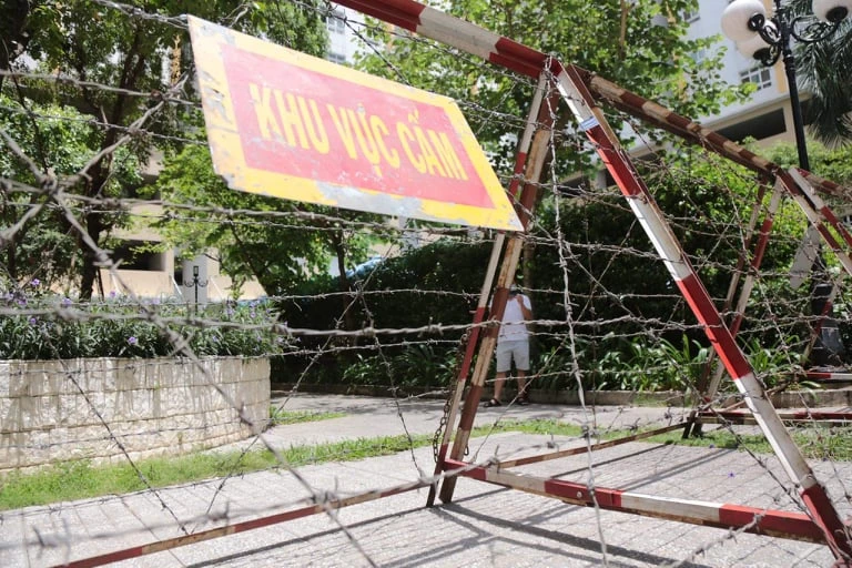 Phong tỏa khu vực nơi trường hợp nghi nhiễm SARS-CoV-2 sinh sống. Ảnh: TỰ SANG