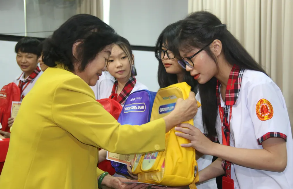 | Bà Lê Thị Anh Thư, Phó Chủ tịch UBND huyện Nhà Bè, trao bằng khen cho các gia đình học tập tiêu biểu. Ảnh: KHÁNH AN |