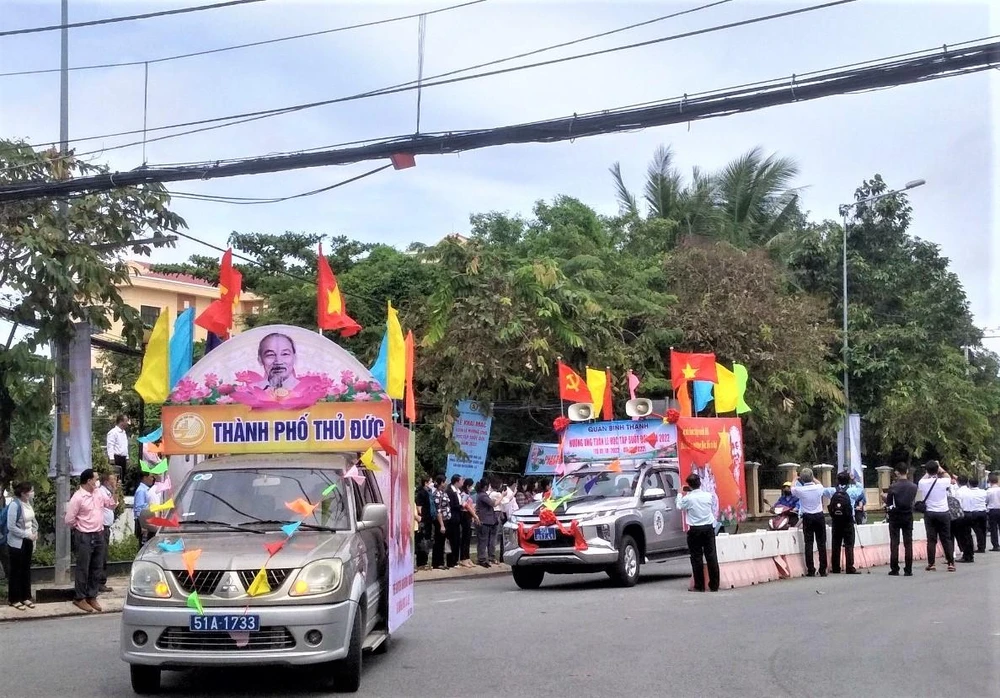 Đoàn xe diễu hành qua các quận, huyện tuyên truyền về Tuần lễ hưởng ứng học tập suốt đời. Ảnh: KHÁNH AN |