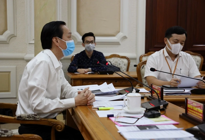 Phó Chủ tịch UBND TP.HCM Lê Thanh Liêm báo cáo tại cuộc họp. Ảnh: TTBC