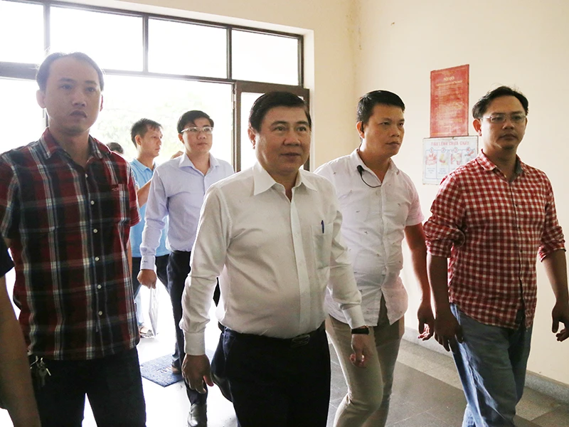 Chủ tịch UBND TP.HCM Nguyễn Thành Phong đến Trung tâm Bồi dưỡng chính trị quận 2 để gặp người dân Thủ Thiêm. Ảnh: HOÀNG GIANG