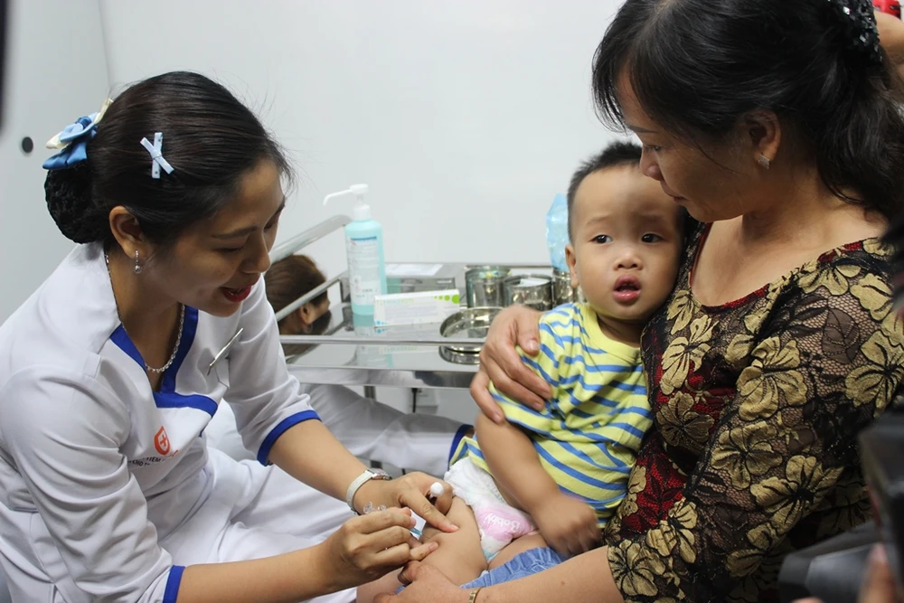 Trẻ được phụ huynh đưa đi chích ngừa dịch vụ tại một cơ sở ở TP.HCM. Ảnh: HL