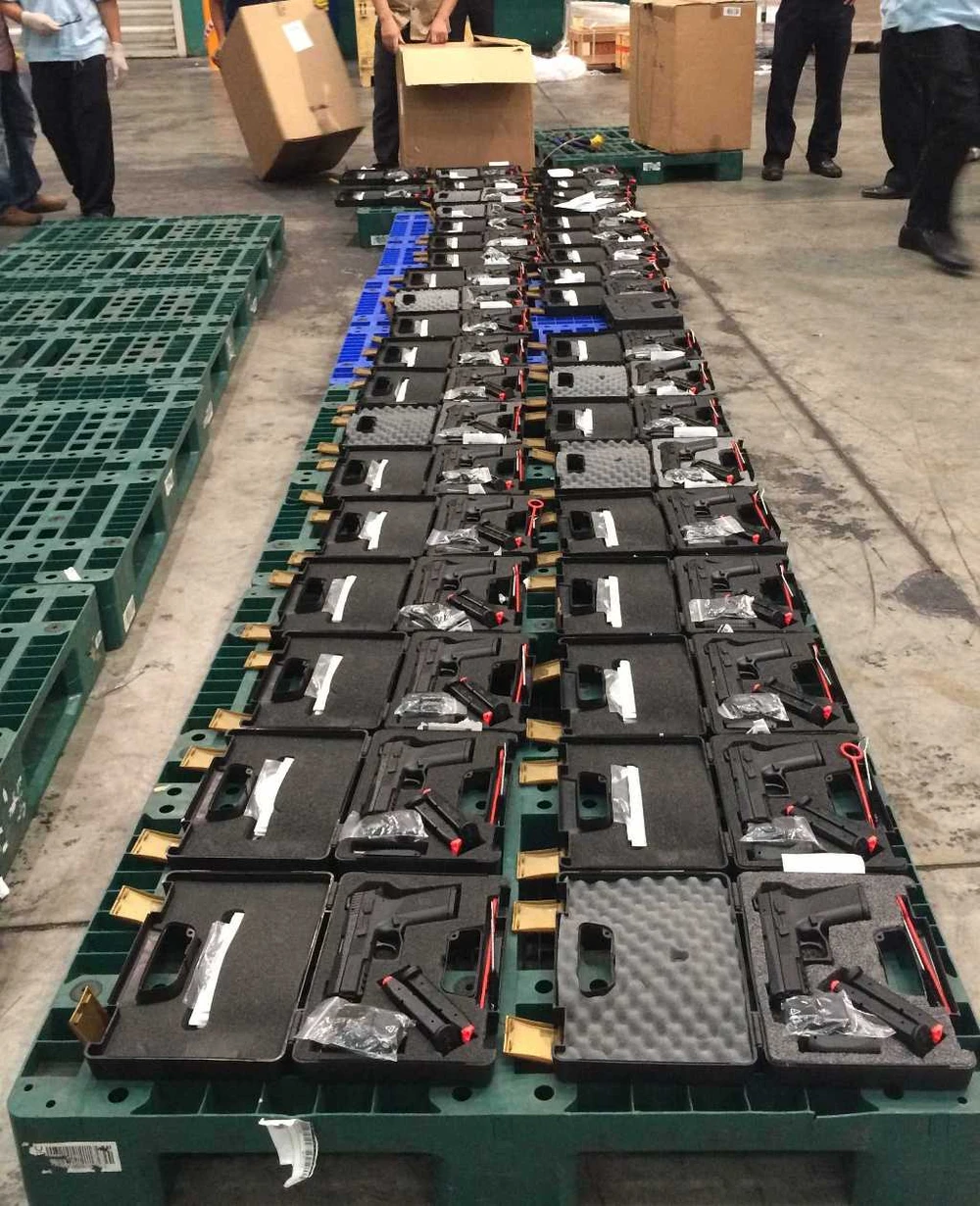Qua quá trình kiểm tra thực tế, lực lượng chức năng phát hiện 94 khẩu súng ngắn quân dụng có trang bị ngắm laser, thuộc loại hiện đại thường dùng bảo vệ các nguyên thủ và 472 băng đạn mới 100% cùng đầy đủ linh kiện, phụ kiện, được cất giấu tinh vi dưới dạng các kiện hàng thương mại thông thường.