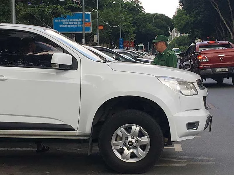 Từ ngày 1-5, lực lượng thanh niên xung phong chính thức nhận nhiệm vụ thu phí ô tô dưới lòng đường. Ảnh: ĐÀO TRANG