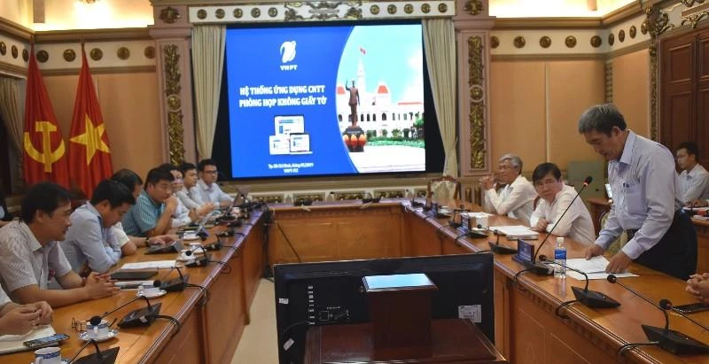 Chiều 6-6, Chủ tịch UBND TP.HCM Nguyễn Thành Phong và Phó Chủ tịch Võ Văn Hoan đã nghe báo cáo về mô hình “Phòng họp không giấy” và “Ứng dụng giao việc tức thời và nhắc việc thông minh”.